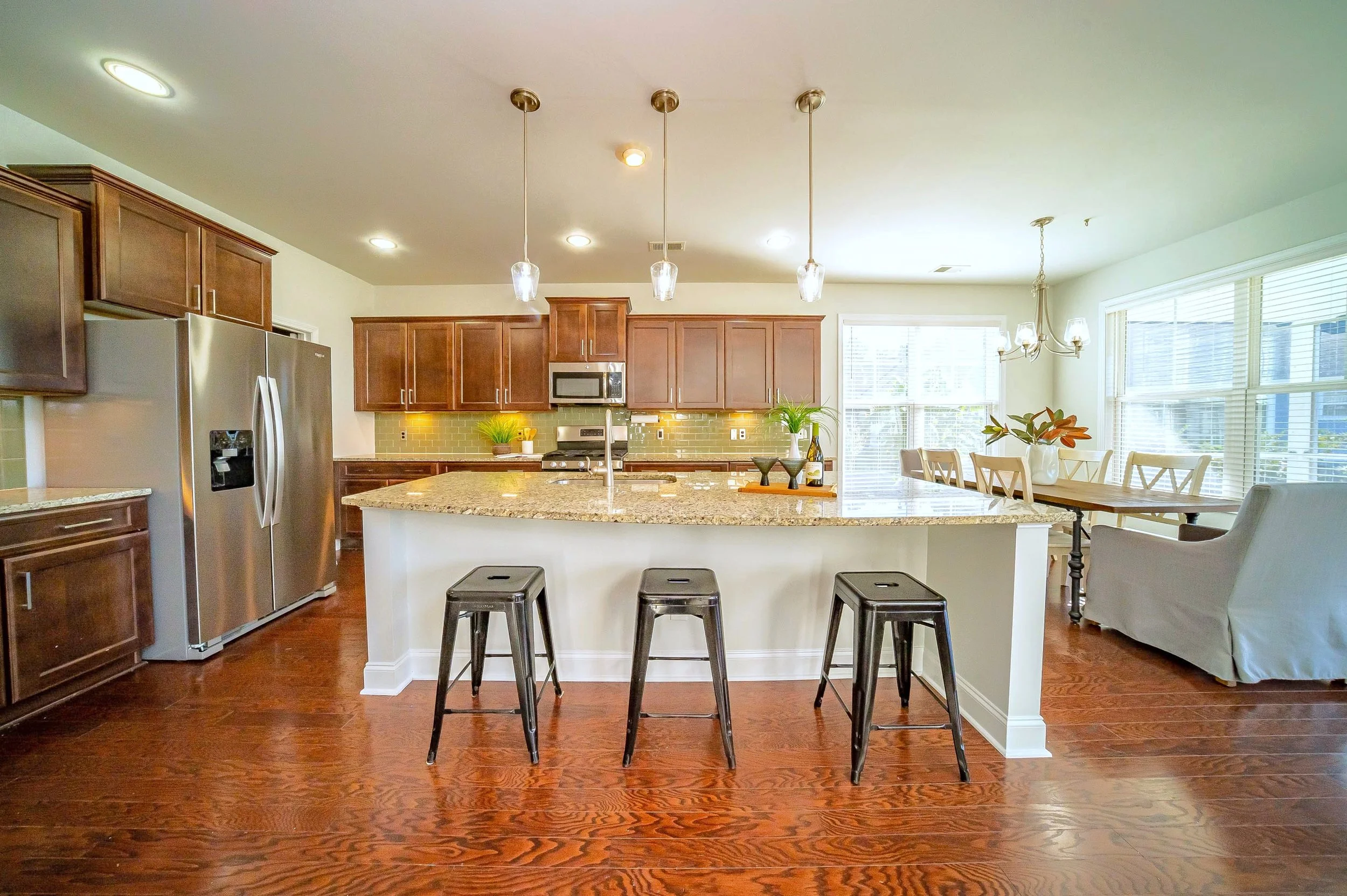 The right lighting can transform a space, making it feel open and welcoming—essential elements in showcasing a residential home. We will start by turning on all of the lights and opening all the blinds. We don’t want to raise them as that will create harsh shadows with the sun, but we do want as much light as we can. This will create a warm ambiance that potential buyers can envision themselves living in.